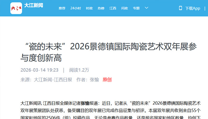 【江西日報】“瓷的未來”2026景德鎮(zhèn)國際陶瓷藝術(shù)雙年展參與度創(chuàng)新高
